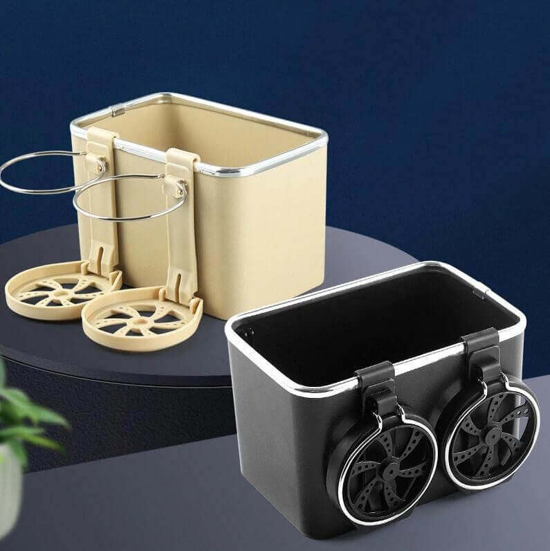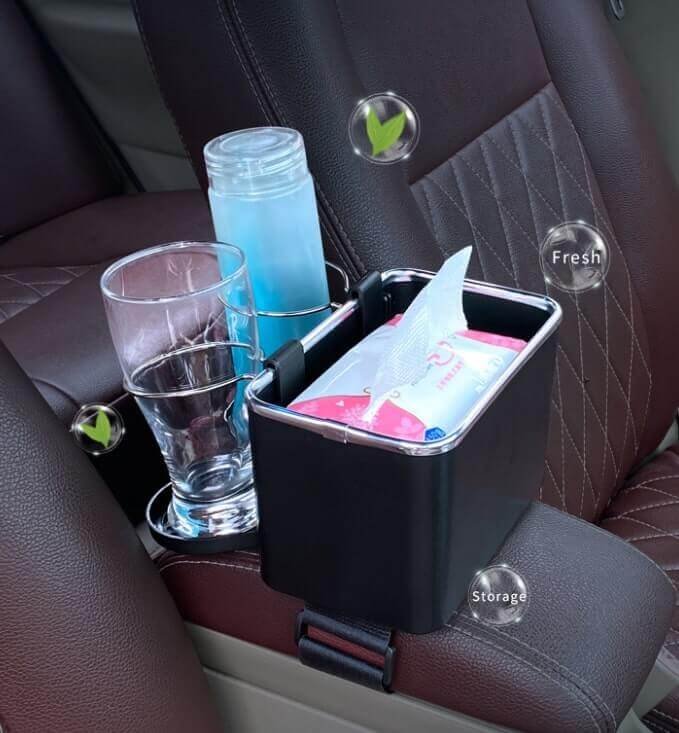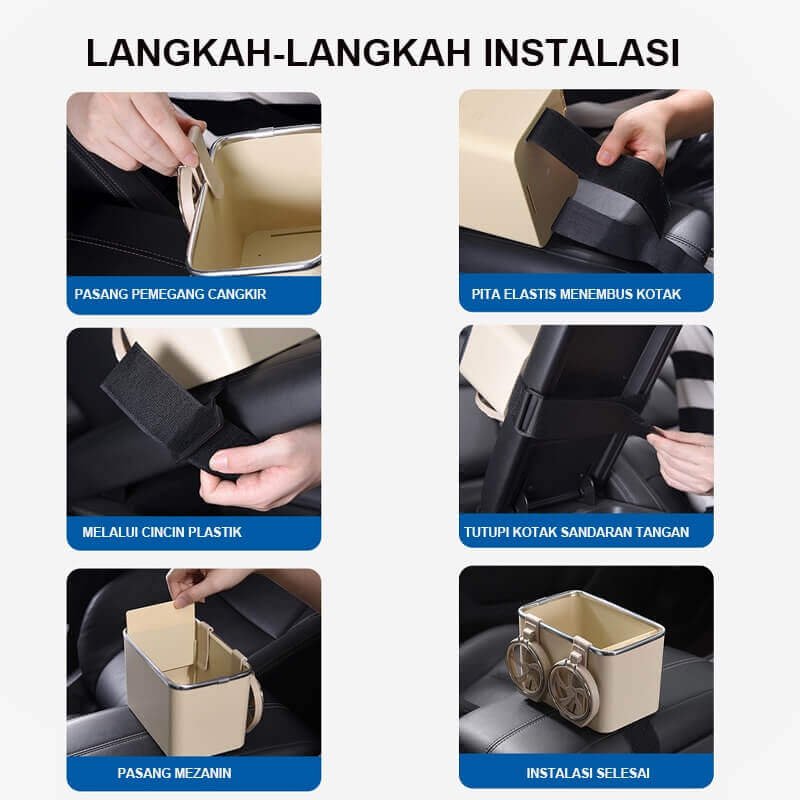 Kotak Penyimpanan yang bisa dijadikan untuk menyimpan barang seperti tissu serta Dilengkapi dengan 2 tempat cangkir lipat yang di desain untuk menaruh minuman